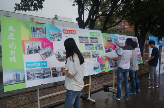2、開放圖書館,展示我館特色。我館從“館舍環(huán)境優(yōu)美、服務(wù)爭先創(chuàng)優(yōu)、書香溢滿校園、結(jié)對互助幫扶、志愿服務(wù)愛漂流”五個方面,通過展板展示,現(xiàn)場講解等方式宣傳了本館的文化特色,面向中小學(xué)生及家長和社區(qū)居民開展一系列職業(yè)體驗活動,邀請相關(guān)企業(yè)、中小學(xué)生參觀圖書館,介紹職業(yè)教育,加深對職業(yè)教育的了解認(rèn)識,熱愛職業(yè)教育。