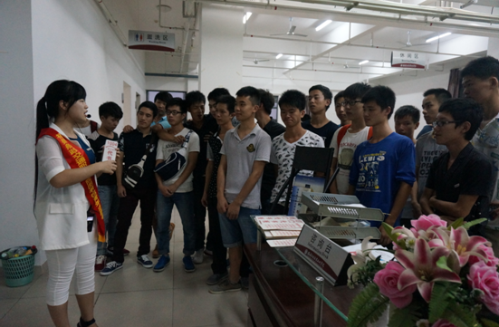 為使新生盡快了解圖書(shū)館,充分利用圖書(shū)館提供的資源和服務(wù),獲取信息和知識(shí),帶動(dòng)更多的學(xué)生熱愛(ài)讀書(shū)、善于讀書(shū),我院2014級(jí)4000多名新生在圖書(shū)館青年志愿者的帶領(lǐng)下分批走進(jìn)圖書(shū)館。