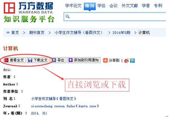6、如點(diǎn)擊“電子全文”,會(huì)進(jìn)入本館已購買的相關(guān)數(shù)據(jù)庫的文獻(xiàn)詳情頁面,可以直接瀏覽或下載