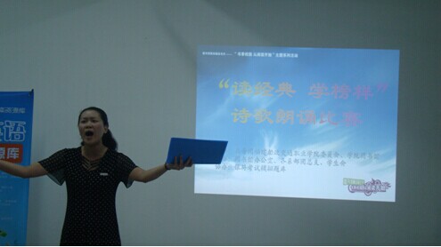 3月22日,圖書館“書香校園從閱讀開始”第四屆讀書月系列活動“讀經(jīng)典學(xué)榜樣”詩歌朗誦比賽在圖書館9樓活動室舉行。全院近30名選手報名參加了比賽。