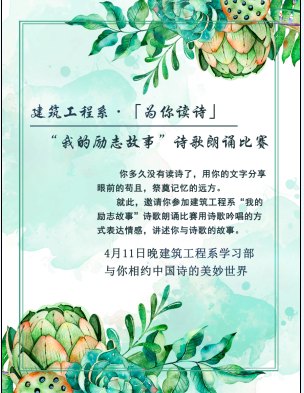 近日,建工系團(tuán)總支承辦了圖書(shū)館為你讀詩(shī)2017世界詩(shī)歌日特別活動(dòng)分賽場(chǎng)——“我的勵(lì)志故事”尋找最美朗讀者活動(dòng)。