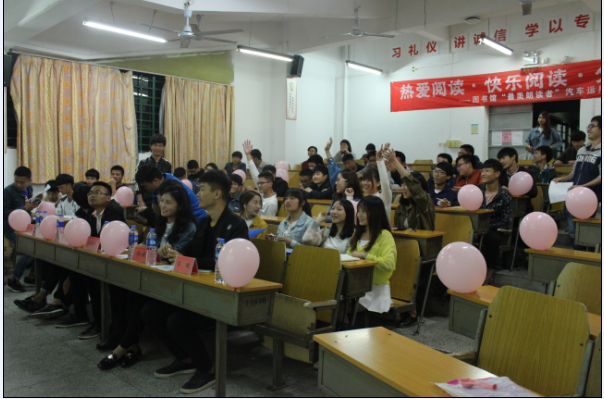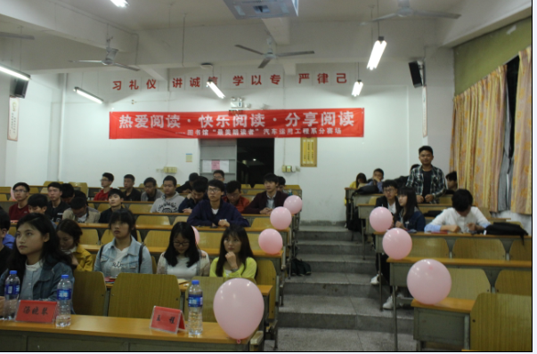 活動(dòng)在各班級(jí)如火如荼的開展,旨在讓全系同學(xué)分享了自己在閱讀中的種種收獲,為同學(xué)們營造出溫馨的讀書氛圍,感受讀書的愜意。各班同學(xué)們還紛紛在“享讀書之樂,浴書香之馨”的現(xiàn)場橫幅上簽下自己的名字,倡議大家“好讀書 勤讀書 薦好書”。經(jīng)過各支部推薦選拔,4月11日在北區(qū)22號(hào)樓汽一階教室舉辦此次活動(dòng)的決賽,活動(dòng)特邀圖書館學(xué)生館員聯(lián)合會(huì)代表和我系學(xué)生會(huì)主席團(tuán)與各部門長參與評(píng)選,同學(xué)不僅紛紛踴躍推薦自己心目中的好書,還讓同學(xué)們分享了自己在閱讀中的心得與體會(huì),展示了禮儀、汽車營銷等閱讀、學(xué)習(xí)成果。