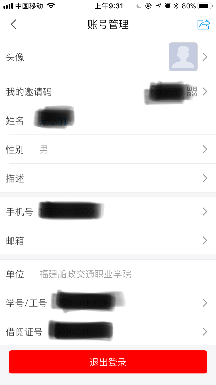3、綁定個人信息:在首頁右下方“我的”點擊頭像位置進入賬號管理界面,綁定手機號、郵箱、單位及借閱證號(單位填寫福建船政交通職業(yè)學院的學院代碼:24571,注意:一定要綁定本校圖書館借閱證號(即學號)才可參與活動,后臺才會統(tǒng)計出有效分數(shù),無單位認證為無效分數(shù))