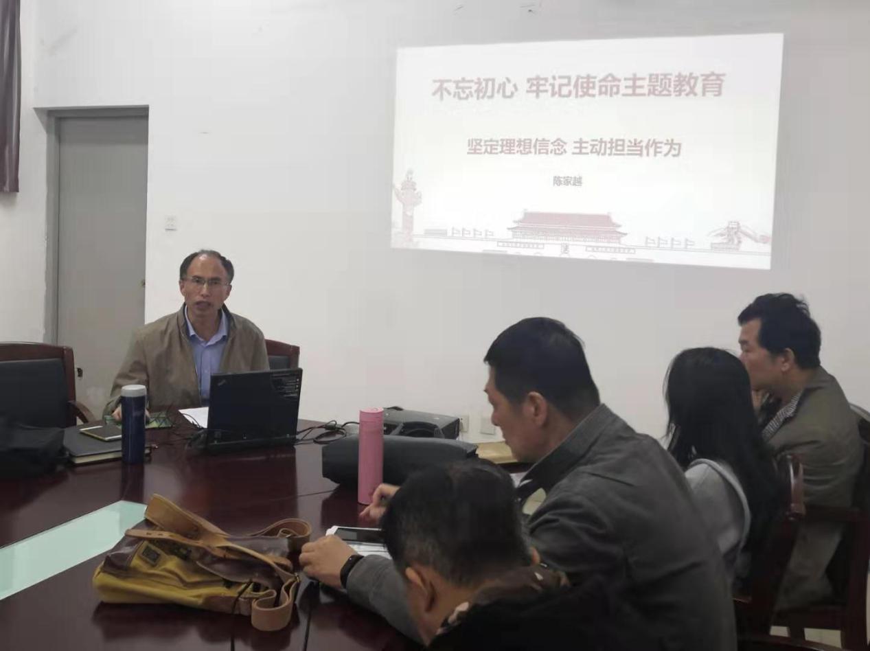 11月21日上午,根據(jù)學(xué)院“不忘初心、牢記使命”主題教育工作安排部署,圖書館館長陳家越在館內(nèi)9樓會(huì)議室為全體館員做了“不忘初心,牢記使命”的專題黨課,他圍繞“以堅(jiān)定的理想信念堅(jiān)守初習(xí)心”、“堅(jiān)定理想信念永葆政治本色”、“在知行合一中主動(dòng)擔(dān)當(dāng)作為”等三個(gè)方面進(jìn)行了闡述。家越館長指出,我們要時(shí)刻不忘我們黨來自人民、根植人民,全體館員要深入學(xué)習(xí)習(xí)近平新時(shí)代中國特色社會(huì)主義思想,檢視自己的理想信念和思想言行,永葆政治本色,要自覺運(yùn)用當(dāng)代中國馬克思主義去改造客觀世界,在投身實(shí)踐過程中主動(dòng)擔(dān)當(dāng)作為。