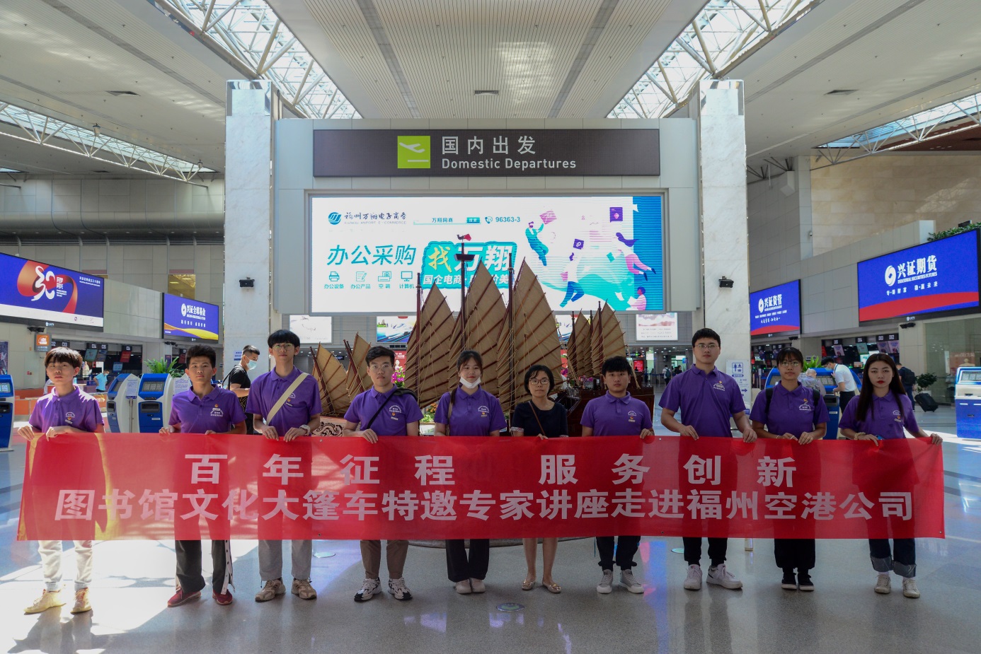 為深入學(xué)習(xí)貫徹全國職業(yè)教育大會精神,大力發(fā)揚職業(yè)教育,大力弘揚勞動光榮、技能寶貴、創(chuàng)造偉大的時代風(fēng)尚,根據(jù)學(xué)院2021年職業(yè)教育活動周的通知安排,5月26日,我館聯(lián)合航空學(xué)院走進企業(yè)開展職教服務(wù)。當(dāng)天下午,在福州機場候機樓三樓航博館開展了“百年征程 服務(wù)創(chuàng)新——圖書館文化大篷車特邀專家講座走進福州空港”活動。