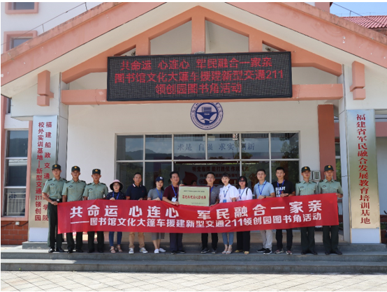 8月29日上午,圖書(shū)館黨員代表赴武夷山福建船政交通職業(yè)學(xué)院校外實(shí)訓(xùn)基地-新型交通211領(lǐng)創(chuàng)園,開(kāi)展圖書(shū)館文化大篷車(chē)援建新型交通211領(lǐng)創(chuàng)園圖書(shū)角活動(dòng)。211領(lǐng)創(chuàng)園相關(guān)負(fù)責(zé)人、東部戰(zhàn)區(qū)陸軍軍民融合汽車(chē)駕駛培訓(xùn)學(xué)兵營(yíng)教練員、學(xué)兵代表共同參與了此次活動(dòng)。