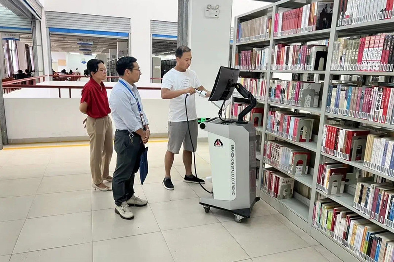 隨后,張副院長對智慧圖書館平臺建設的試用效果進行了深入調研。陳林館長匯報了智慧圖書館建設的進展情況和應用效果,工作人員現(xiàn)場演示了激光條碼系統(tǒng)快速借還圖書、智能盤點等操作,張副院長對圖書館整體工作、智慧圖書館平臺建設進展給予了充分的肯定,并提出具體的指導意見及建議。