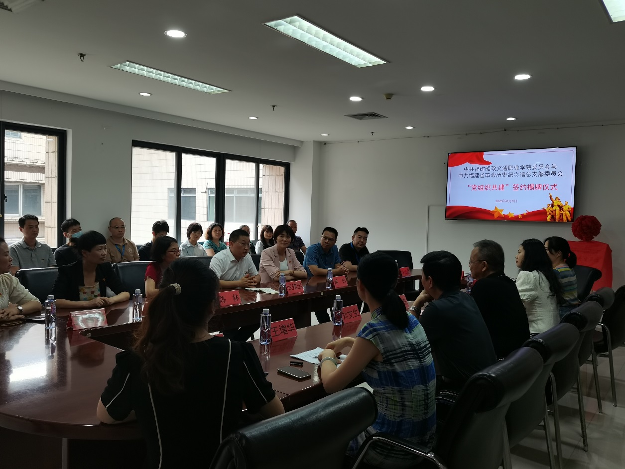 當天,圖書館黨支部黨員代表參與中共福建船政交通職業(yè)學院委員會與中共福建省革命歷史紀念館總支部委員會黨組織共建的揭牌儀式。福建省革命歷史紀念館館長楊衛(wèi)東及相關(guān)部門領(lǐng)導和我校組織部部長張建國、機關(guān)黨總支書記蔣玲、圖書館館長陳林以及機關(guān)黨總支部分黨員同志等近30人參加了簽約儀式。