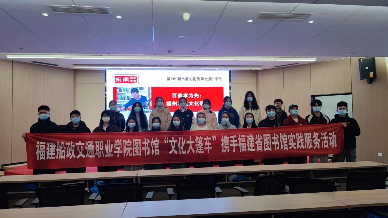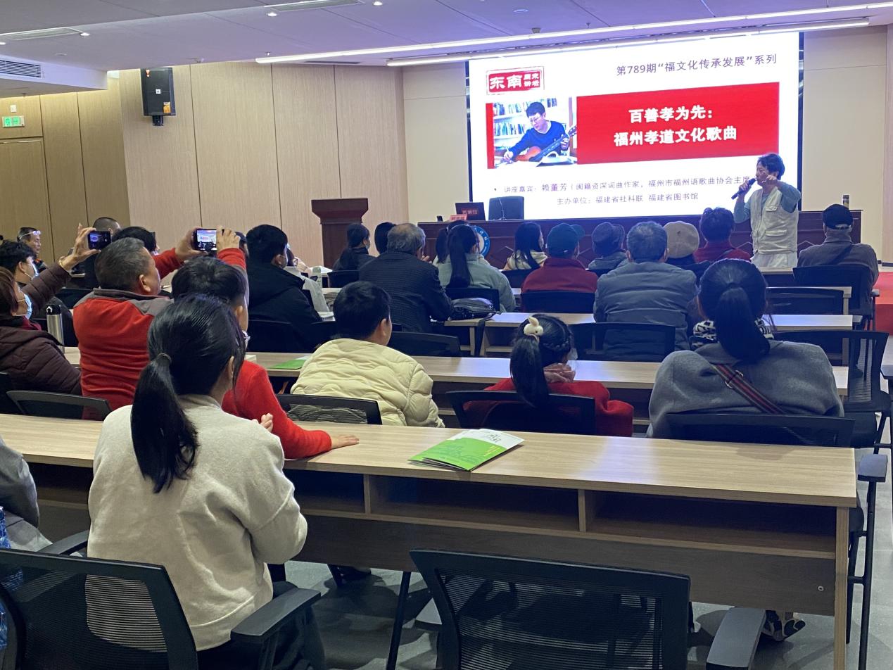 3月9日上午,為豐富校園文化生活,堅持立德樹人的根本任務(wù),加強(qiáng)館讀溝通的橋梁建設(shè),充分發(fā)揮圖學(xué)聯(lián)團(tuán)隊的作用,圖書館“文化大篷車”攜手福建省圖書館開展實踐服務(wù)活動。圖學(xué)聯(lián)志愿者們走進(jìn)福建省圖書館,為“東南周末講壇”活動提供志愿服務(wù),并觀摩閩籍資深詞曲作家、福州市福州語歌曲協(xié)會主席賴董芳老師《百善孝為先:福州孝道文化歌曲》的講座,享受了一場別開生面的文化盛宴。