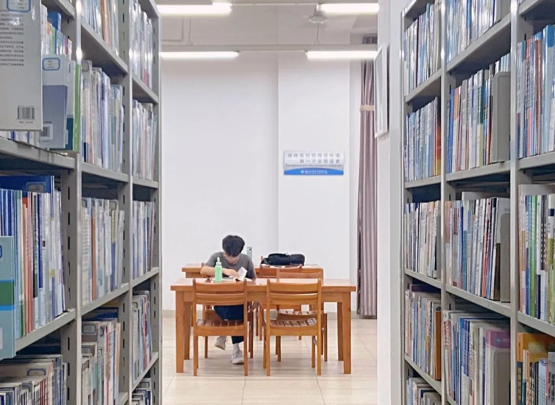 捕捉在安靜的圖書館里沉浸于學習和閱讀的同學們