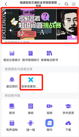 Step4:進入首頁,點擊“名家名著知識挑戰(zhàn)賽”,即可參與答題