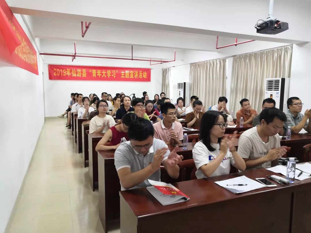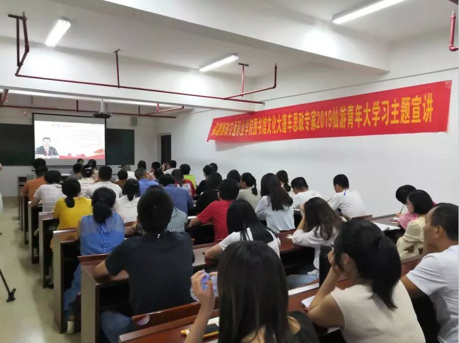 為進(jìn)一步引導(dǎo)廣大青年深入學(xué)習(xí)、宣傳、貫徹習(xí)近平新時(shí)代中國特色社會(huì)主義思想和黨的十九大精神,不忘初心、牢記使命,切實(shí)增強(qiáng)“四個(gè)意識(shí)”,堅(jiān)定“四個(gè)自信”,9月17日,仙游團(tuán)縣委在縣委黨校組織開展2019年仙游縣“青年大學(xué)習(xí)”主題宣講活動(dòng),我館文化大篷車特邀思政專家走進(jìn)此宣講活動(dòng),洪凌艷老師現(xiàn)場(chǎng)授課《平語近人》——習(xí)近平總書記用典,仙游團(tuán)縣委黨支部全體黨員領(lǐng)導(dǎo)干部及50余名鄉(xiāng)鎮(zhèn)(街道)、學(xué)校團(tuán)干部參加學(xué)習(xí)。