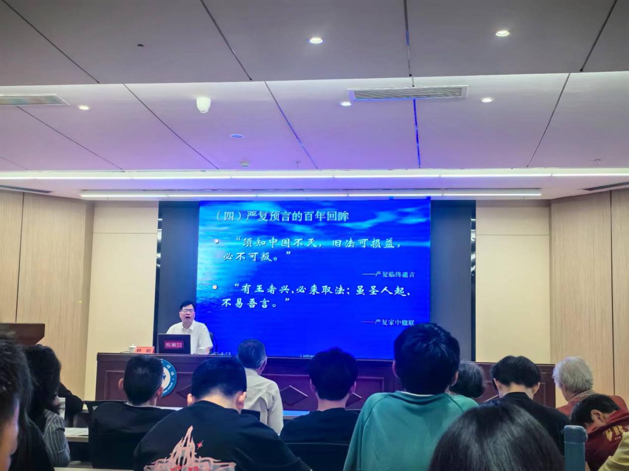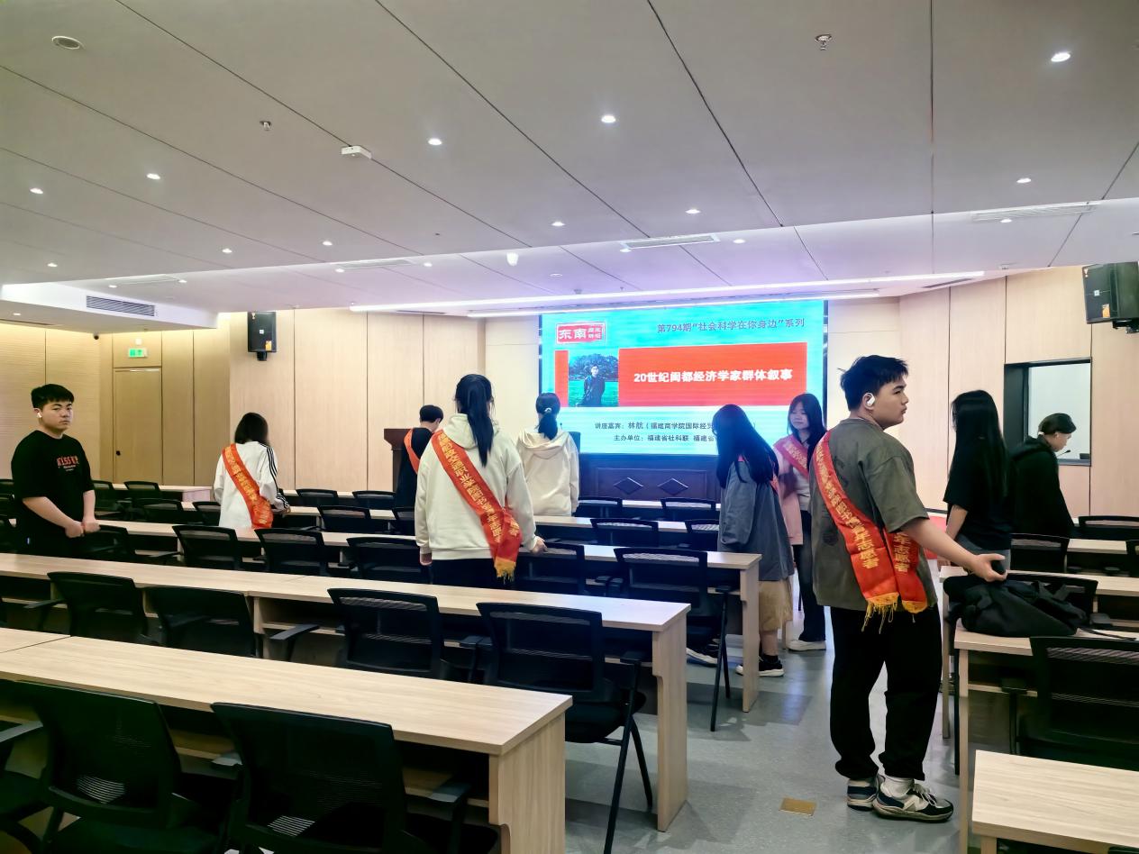 同學(xué)們在志愿服務(wù)的同時,還觀摩了福建商學(xué)院國際經(jīng)貿(mào)學(xué)院副教授、博士、福建商學(xué)院閩商研究中心特約研究員林航作“20世紀(jì)閩都經(jīng)濟(jì)學(xué)家群體敘事”的專題講座。講座講述的是以“船政人物”嚴(yán)復(fù)為代表的閩都經(jīng)濟(jì)學(xué)家發(fā)揚(yáng)斗爭精神,賡續(xù)閩學(xué)基因,對舶來經(jīng)濟(jì)學(xué)說中國化的探索歷程綿延百年,為中國經(jīng)濟(jì)學(xué)建設(shè)注入閩學(xué)精神,他們的開創(chuàng)性貢獻(xiàn)值得銘記和緬懷。在講座最后的問答互動環(huán)節(jié)中,林航副教授親切熱情、娓娓道來地回答了同學(xué)們關(guān)注的問題。