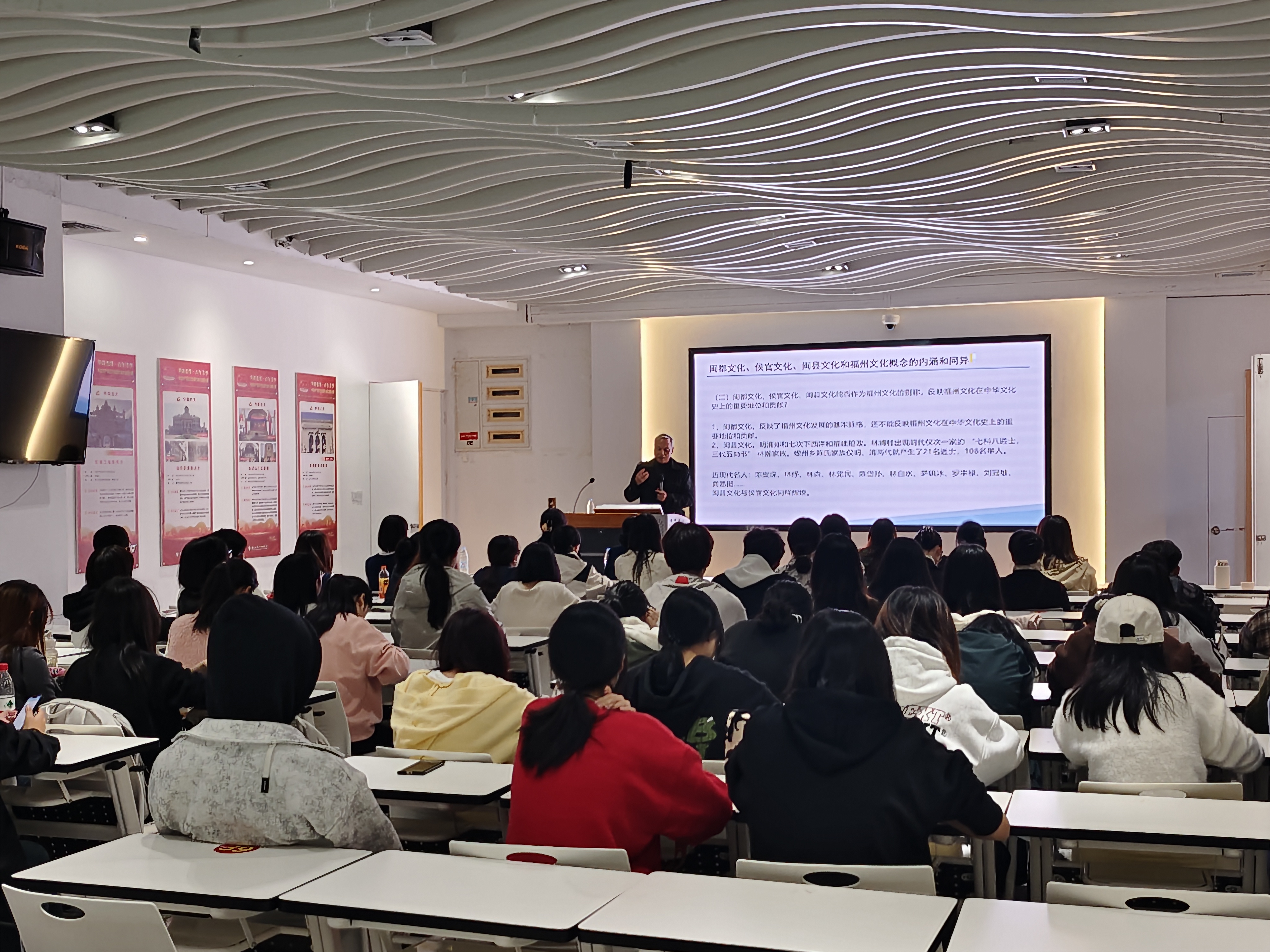 講座由福建師范大學(xué)馬克思主義學(xué)院博士生導(dǎo)師王崗峰教授主講。其內(nèi)容圍繞著閩都文化、侯官文化、閩縣文化和福州文化概念的內(nèi)涵和同異;嚴(yán)復(fù)為核心的福州學(xué)派——“侯官新學(xué)”;研究侯官文化的重要意義等方面展開。王教授詳細(xì)闡述了嚴(yán)復(fù)思想在侯官文化中的靈魂地位。