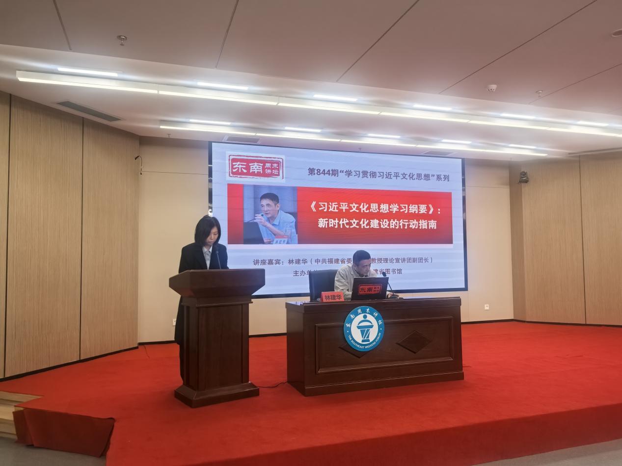 本次講座特邀中共福建省委黨校老教授理論宣講團(tuán)副團(tuán)長(zhǎng)林建華擔(dān)任主講嘉賓,以《習(xí)近平文化思想學(xué)習(xí)綱要》為核心,聚焦新時(shí)代文化建設(shè)的行動(dòng)指南。
