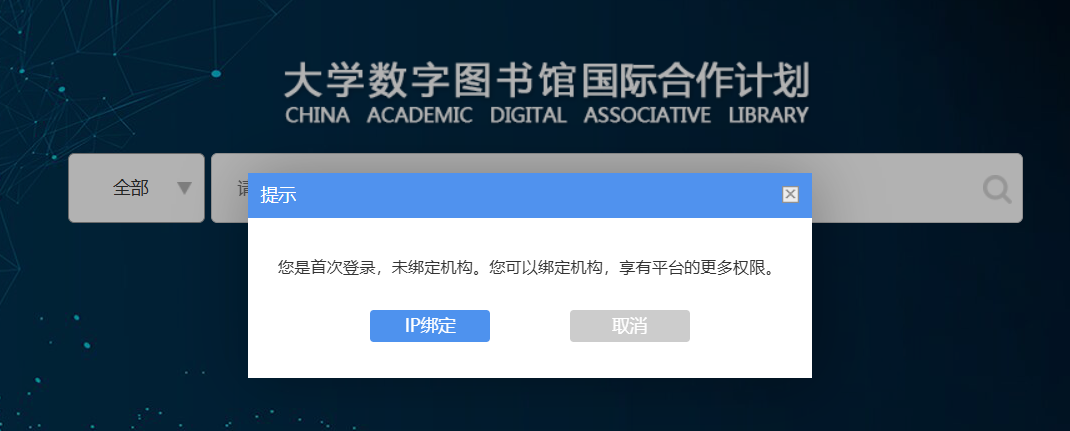 注冊(cè)用戶在校園網(wǎng)內(nèi)登陸后,可在“個(gè)人設(shè)置”中進(jìn)行IP綁定機(jī)構(gòu),賬號(hào)直接擁有該單位權(quán)限。認(rèn)證通過(guò)后可在校外訪問(wèn)與校內(nèi)同等權(quán)限的資源。