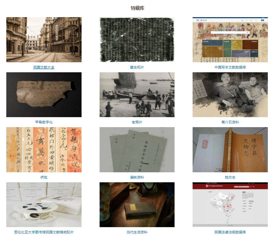 同時(shí),CADAL還提供民國(guó)文獻(xiàn)大全、墓志拓片、中國(guó)寫(xiě)本文獻(xiàn)數(shù)據(jù)庫(kù)、甲骨文數(shù)字化、老照片、蔣介石資料、滿鐵資料、僑批、哥倫比亞大學(xué)圖書(shū)館民國(guó)文獻(xiàn)縮微膠片、當(dāng)代生活資料、民國(guó)法律法規(guī)等特藏庫(kù),以及中國(guó)書(shū)法系統(tǒng)、中國(guó)文學(xué)編年史等特色數(shù)據(jù)庫(kù)。