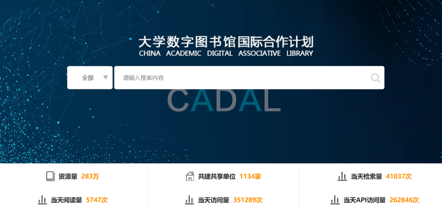 CADAL全稱為“大學(xué)數(shù)字圖書(shū)館國(guó)際合作計(jì)劃”,以“共建共享”理念,整合國(guó)內(nèi)高校圖書(shū)館、圖書(shū)情報(bào)服務(wù)機(jī)構(gòu)、學(xué)術(shù)研究機(jī)構(gòu)所擁有或生產(chǎn)的各類(lèi)信息資源及其相關(guān)服務(wù),有重點(diǎn)地引進(jìn)、共享國(guó)際相關(guān)機(jī)構(gòu)的各類(lèi)信息資源與服務(wù)。