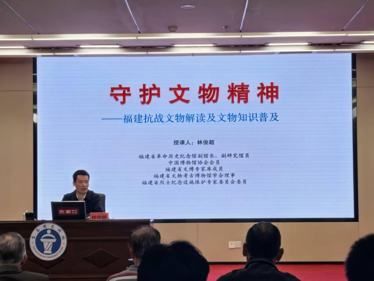 隨后齊聚講座會場,聆聽了由福建省革命歷史紀念館林俊超副館長主講的《守護文物‘精神’——福建抗戰(zhàn)文物解讀及文物知識普及》專題講座。林館長以豐富的文物實例,包括楊成武將軍使用過的望遠鏡等珍貴抗戰(zhàn)文物,深入淺出地解讀了福建抗戰(zhàn)歷史,講述了文物背后蘊含的抗戰(zhàn)精神和民族氣節(jié)。通過專業(yè)生動的講解,志愿者們對福建抗戰(zhàn)歷史有了更深刻的認識,進一步樹立了保護抗戰(zhàn)文物的意識。