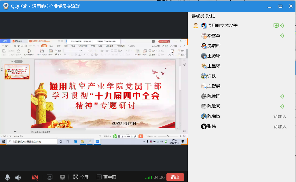 8月31日,為了學習貫徹十九屆四中全會精神,通用航空產業(yè)學院領導班子、全體黨員通過QQ課堂屏幕分享集中開展專題學習研討。會議重點圍繞《中共中央關于堅持和完善中國特色社會主義制度、推進國家治理體系和治理能力現(xiàn)代化若干重大問題的決定》學習內容進行研究解讀。