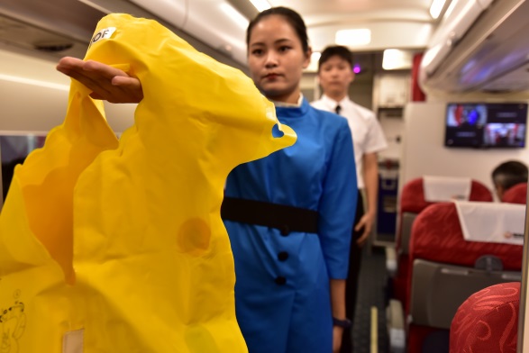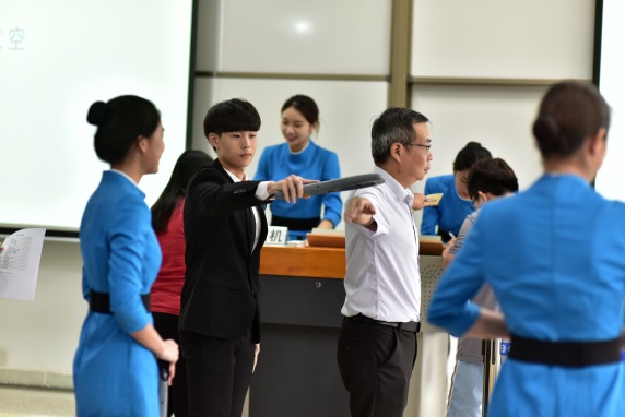 從地面的值機、驗證、安檢、登機開始,就感受到18空中乘務(wù)的同學(xué)燦爛的笑容和專業(yè)的素質(zhì)??此茝?fù)雜的程序,在同學(xué)們熟練的操作引導(dǎo)下,“乘客們”快速有序地登上這架航班。