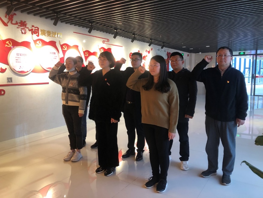 永泰縣黨員政治生活館分為線下的實體館和線上的數(shù)字館,均按照“一廊二廳三室”,即黨史長廊,宣誓廳、傳承廳,組織生活室、警示教育室、紅色電影室。在永泰縣黨員政治生活館講解員張老師的帶領(lǐng)下,我院黨員們重溫了黨的光輝歷程、學(xué)習(xí)了黨的一大到十九大精神,了解了永泰縣歷次黨代會、紅色陣地、優(yōu)秀黨建品牌等黨建工作情況。學(xué)院全體黨員在黨總支副書記蘇漢美帶領(lǐng)下重溫了入黨誓詞。