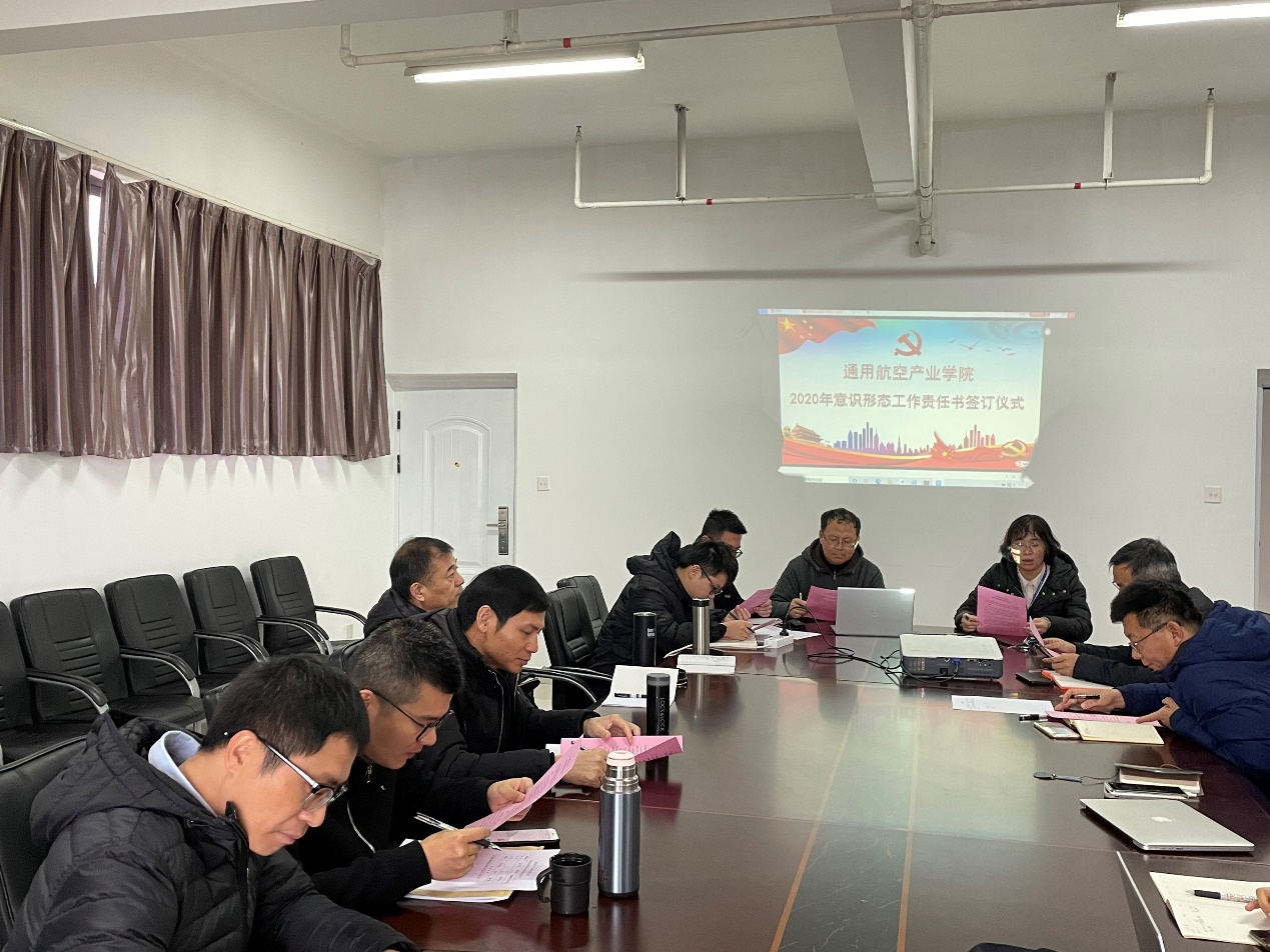 最后,副院長王顯彬帶領(lǐng)大家學(xué)習(xí)、簽訂了《通用航空產(chǎn)業(yè)學(xué)院2020年意識形態(tài)工作責(zé)任書》。
