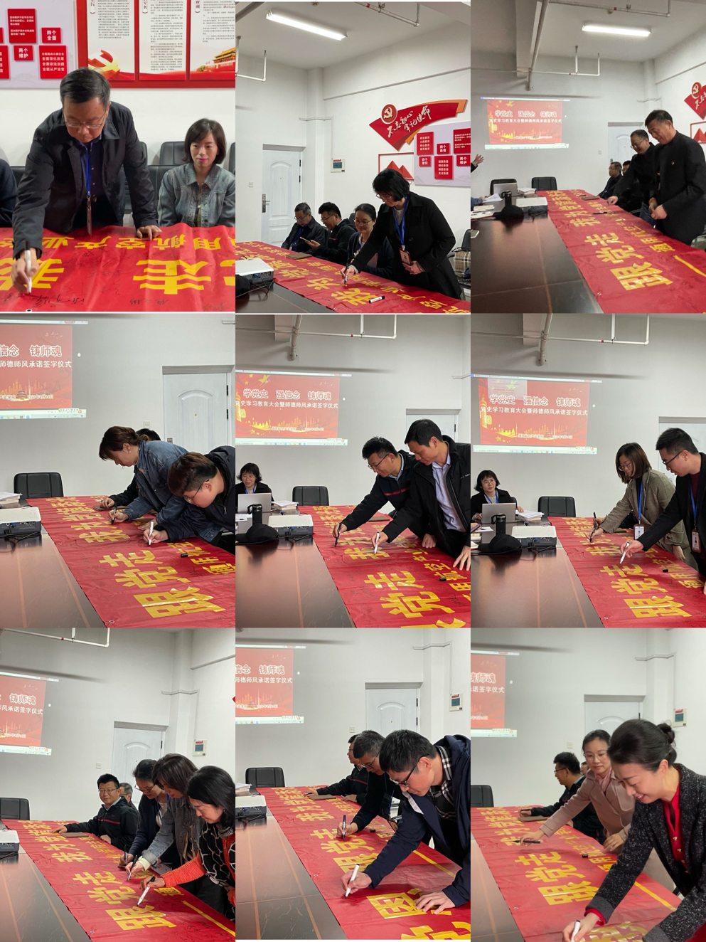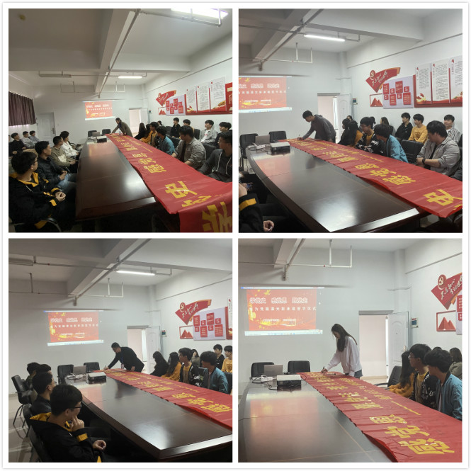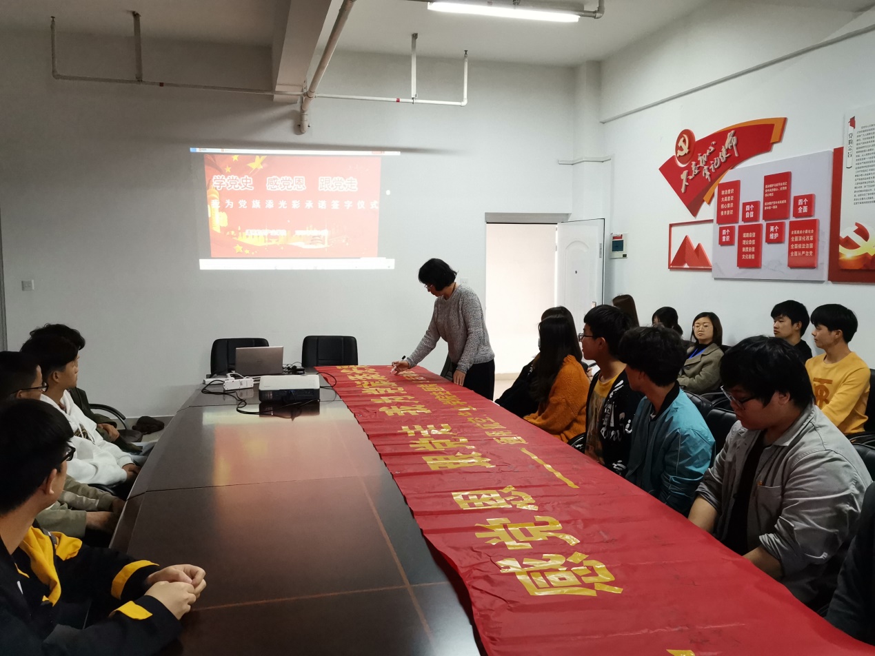 所有黨員和學(xué)生代表依次在“學(xué)黨史、感恩黨、跟黨走,我為黨旗添光彩”的橫幅上一一簽名,許下承諾,用實際行動踐行初心使命。