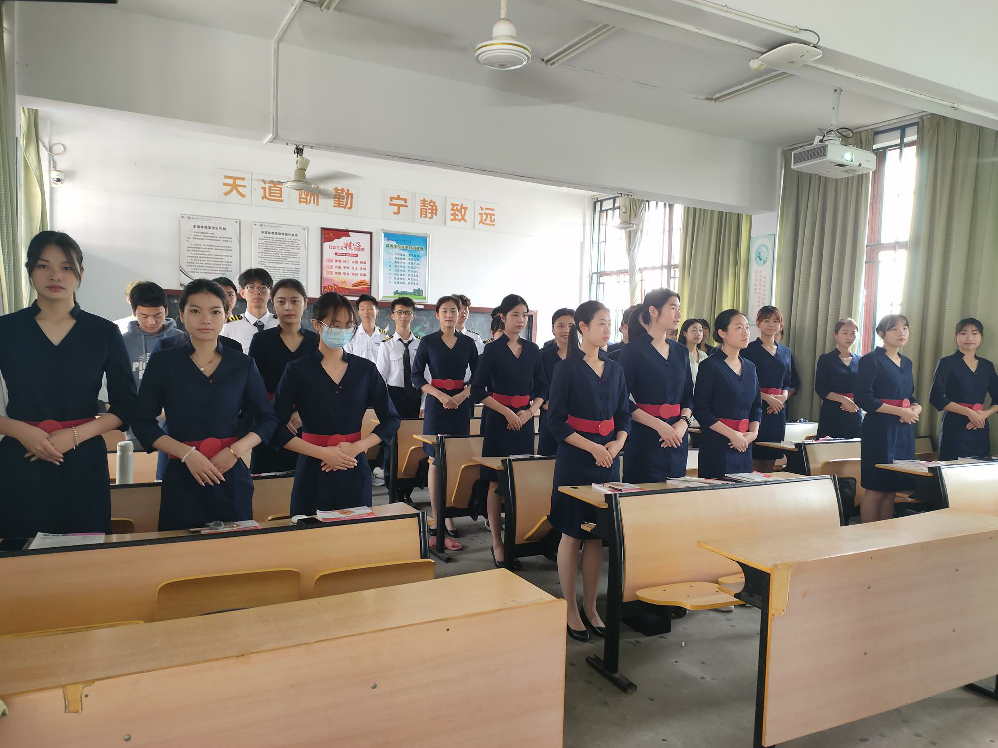 為了從日常點滴樹立空乘人員的禮儀規(guī)范,加強日常言行舉止、儀容儀態(tài)的習慣養(yǎng)成,樹立專業(yè)良好的品牌形象,增加班級凝聚力,航空學院決定從4月起,要求學生上課期間都穿制服。