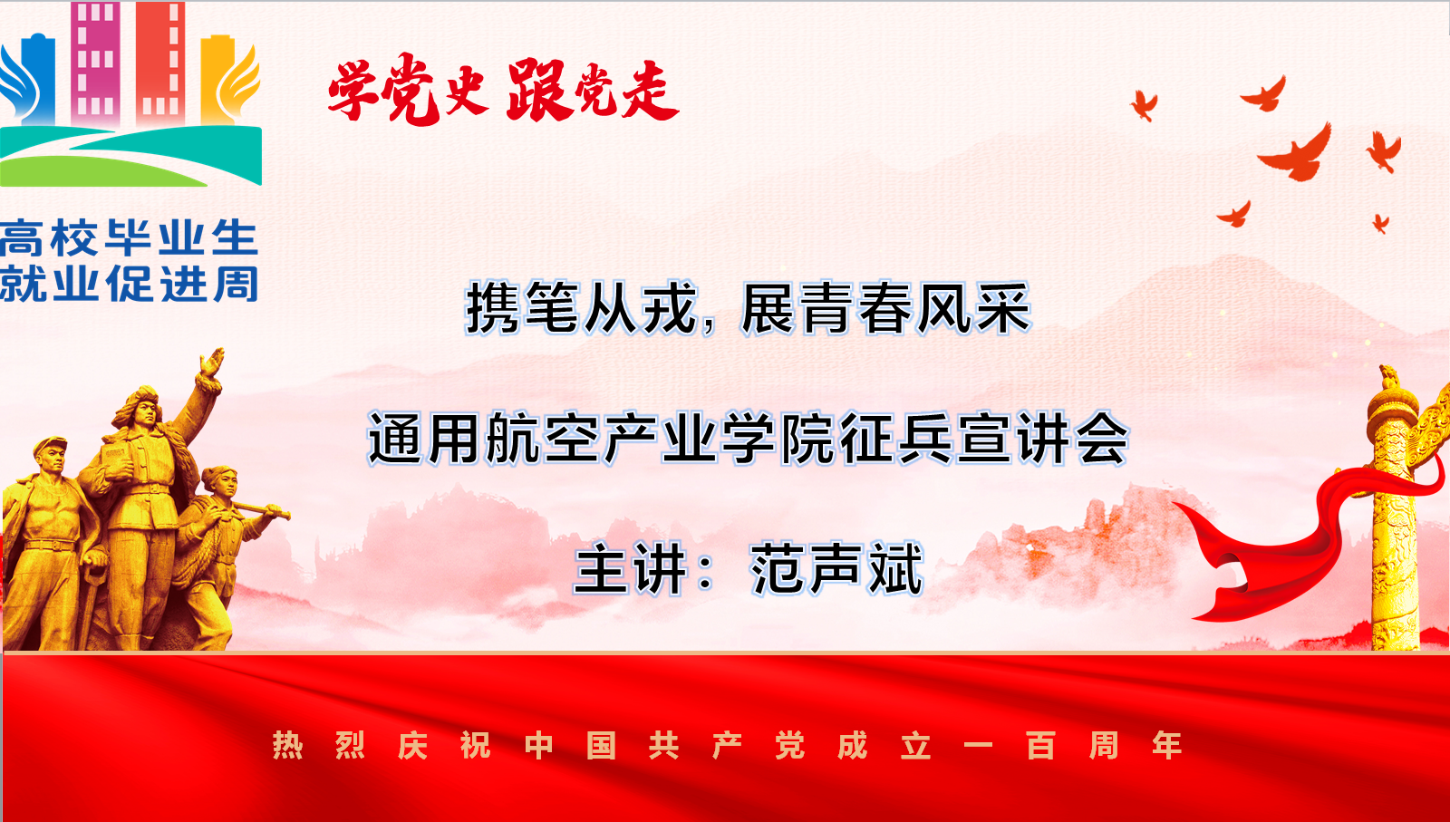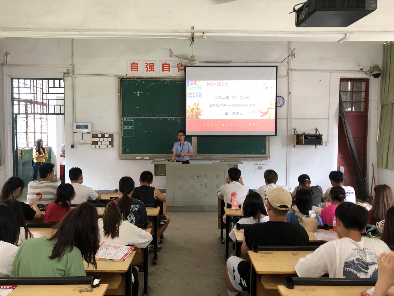 為進(jìn)一步做好2021年我院大學(xué)生征兵宣傳工作,鼓勵(lì)熱血男兒積極應(yīng)征入伍,提升兵源征集質(zhì)量,推進(jìn)國防和軍隊(duì)現(xiàn)代化建設(shè),5月21日中午,通用航空產(chǎn)業(yè)學(xué)院在8號(hào)樓階梯一,組織召開了“攜筆從戎, 展青春風(fēng)采”2021年征兵宣講會(huì)。各年級(jí)近200余名學(xué)生參加,宣講會(huì)由輔導(dǎo)員范聲斌主講。