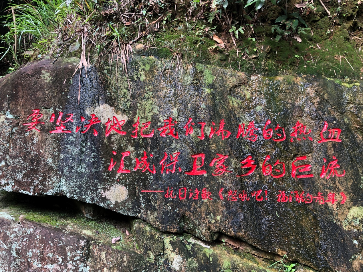 經(jīng)過龍嶼溪“三十六彎”的山路,來到了羅漢里閩中游擊隊(duì)舊址,沿著當(dāng)年紅軍行走的“紅軍路”行進(jìn),在解說員的帶領(lǐng)下穿過密林,沿著當(dāng)年紅軍戰(zhàn)士走過的“紅軍路”,親身體驗(yàn)紅軍戰(zhàn)士們不怕艱難、艱苦奮斗的斗爭精神。感受當(dāng)年游擊隊(duì)員們正是倚仗惡劣的地理環(huán)境,靈活的游擊戰(zhàn)術(shù),帶動了福廈線地區(qū)的革命力量發(fā)展,為福建革命的勝利作出了重要貢獻(xiàn)。如今這條紅軍行走的路上隨處可以看到巖石上鐫刻著懷念先烈的詩文,以及路邊陳列一些相關(guān)的圖文資料,這些鮮活的教材,給我院師生上了一堂生動的黨史教育課。