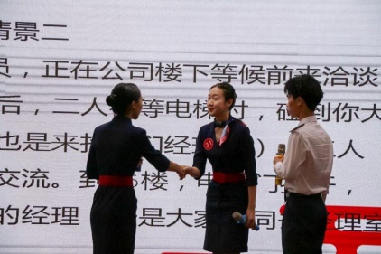 比賽結(jié)束前,福建海川縱橫禮商書院執(zhí)行院長高級禮儀師王清女士分別對十組選手的精彩表現(xiàn)進行細致的逐一點評。