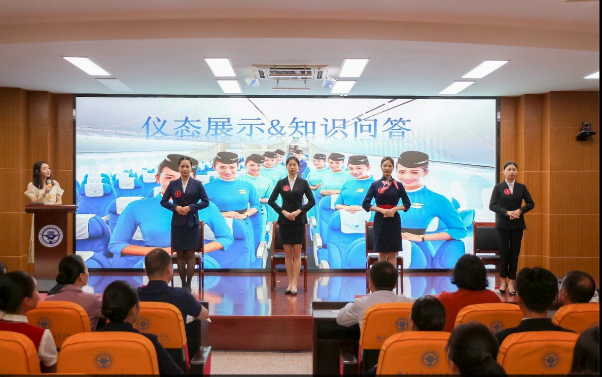 本次到場的評委及嘉賓有福建省禮儀協(xié)會會長黃利天,云楷航空服務(wù)有限公司機長王淼以及福建海川縱橫企業(yè)管理咨詢有限公司高級禮儀師王清,還有來自航空學(xué)院的副書記蘇漢美以及空中乘務(wù)教研室主任江敏。另外本次大賽吸引了200多名學(xué)院師生前往觀看比賽。