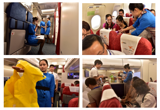 在旅途中,老師與同學(xué)共同模擬演示了客艙服務(wù)的全過程以及各種突發(fā)情況,包括迎接乘客登機、安全演示、客艙餐飲與娛樂服務(wù)、歡送乘客下飛機等。18空中乘務(wù)的同學(xué)們能明確并熟悉客艙服務(wù)的工作程序及相關(guān)內(nèi)容要求,很好地展現(xiàn)空中乘務(wù)員的職業(yè)形象和專業(yè)素養(yǎng),并能熟悉客艙安全規(guī)則、安全管理,能完整而又準確地提供客艙正餐服務(wù)。