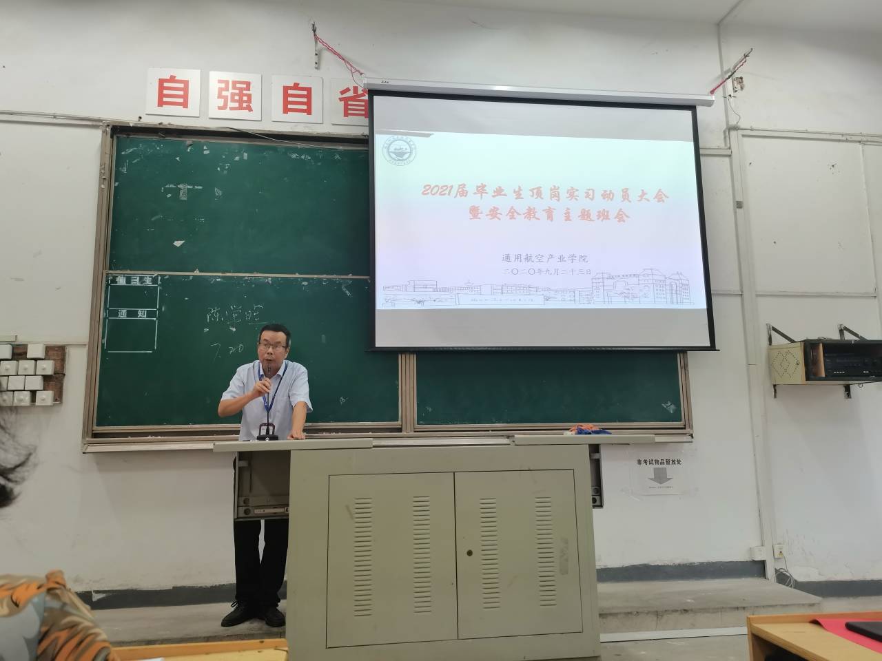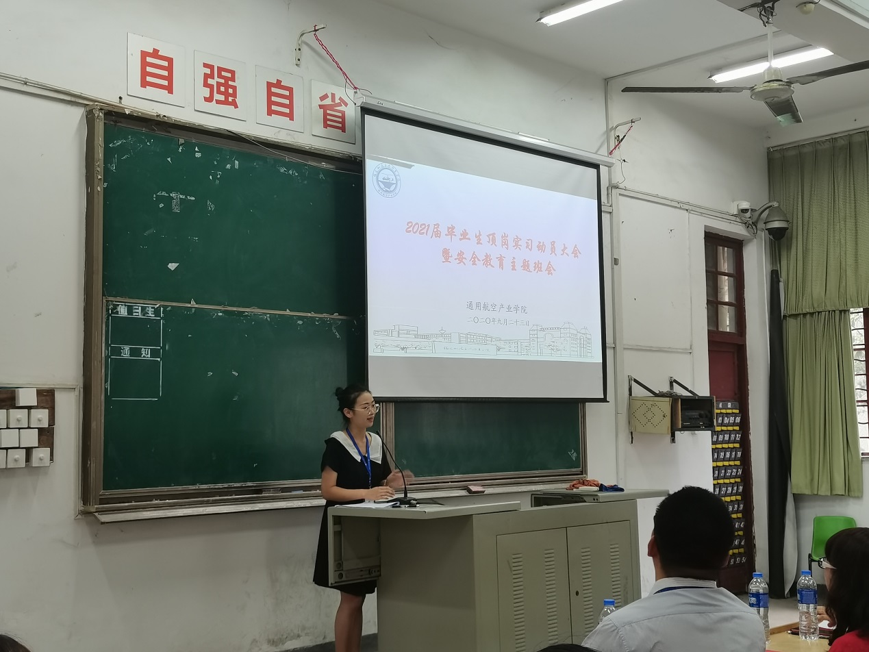 為加強畢業(yè)生對頂崗實習(xí)的認(rèn)識和了解,保障學(xué)生在實習(xí)期間的安全。2020年9月23日下午,通用航空產(chǎn)業(yè)學(xué)院在土一階召開2021屆畢業(yè)生頂崗實習(xí)暨安全教育大會。會議由畢業(yè)班輔導(dǎo)員莊智群老師主持,學(xué)院院長陳常暉、學(xué)院黨總支副書記蘇漢美、學(xué)院副院長王顯彬、空中乘務(wù)教研室主任江敏老師及輔導(dǎo)員范聲斌參加了會議。