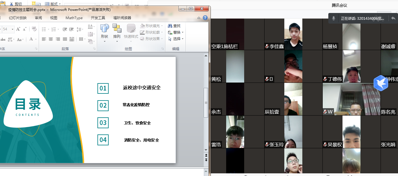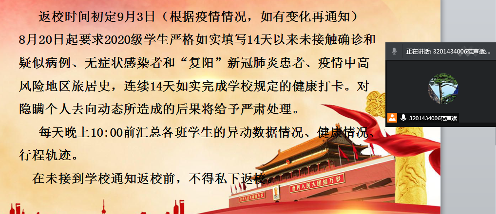 本次常態(tài)化疫情防控安全教育主題班會(huì)的召開,普及疫情防控科學(xué)防范知識(shí),督促同學(xué)們時(shí)刻保持防范意識(shí),養(yǎng)成良好衛(wèi)生習(xí)慣,牢記安全這根弦不不放松,為2020級(jí)學(xué)生順利返校保駕護(hù)航。