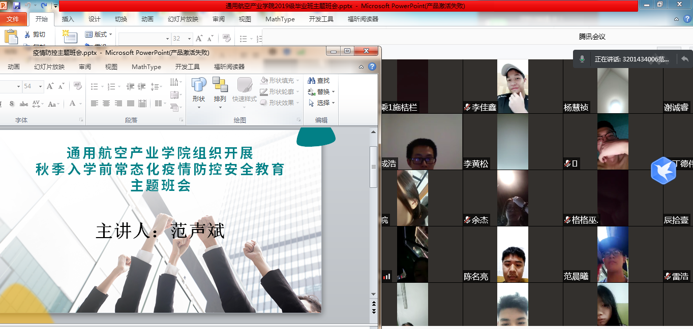 為了加強(qiáng)2020級(jí)學(xué)生到校后的日常管理和疫情防控工作,保障學(xué)院開學(xué)平穩(wěn)有序,進(jìn)一步加強(qiáng)學(xué)生返校安全教育,做好學(xué)生返校服務(wù)與管理工作,通用航空產(chǎn)業(yè)學(xué)院于9月1日依托騰訊云會(huì)議等開展“秋季入學(xué)前常態(tài)化疫情防控安全教育主題班會(huì)”,主題班會(huì)由輔導(dǎo)員范聲斌主持。