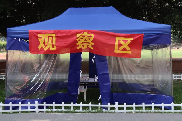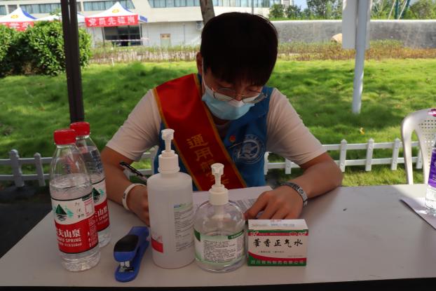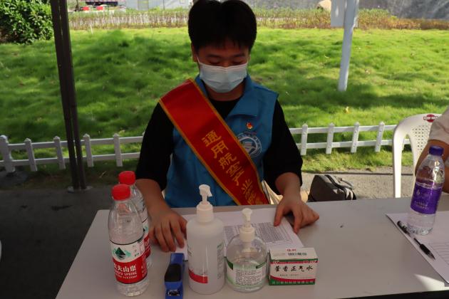 返校當天早晨,相關(guān)工作人員和志愿者們就提前來到學生返校報到現(xiàn)場,清點防疫物資,統(tǒng)一佩戴防護口罩并進行體溫測量。