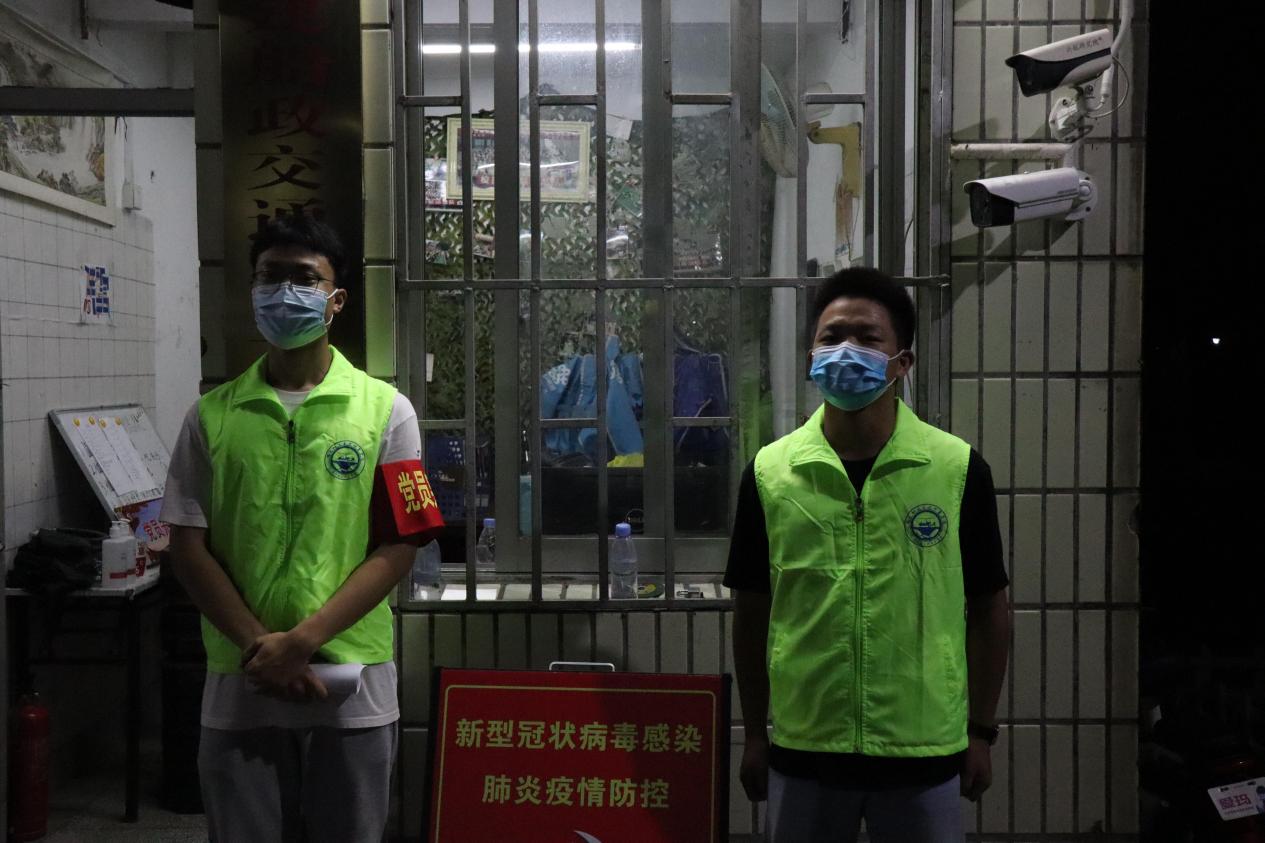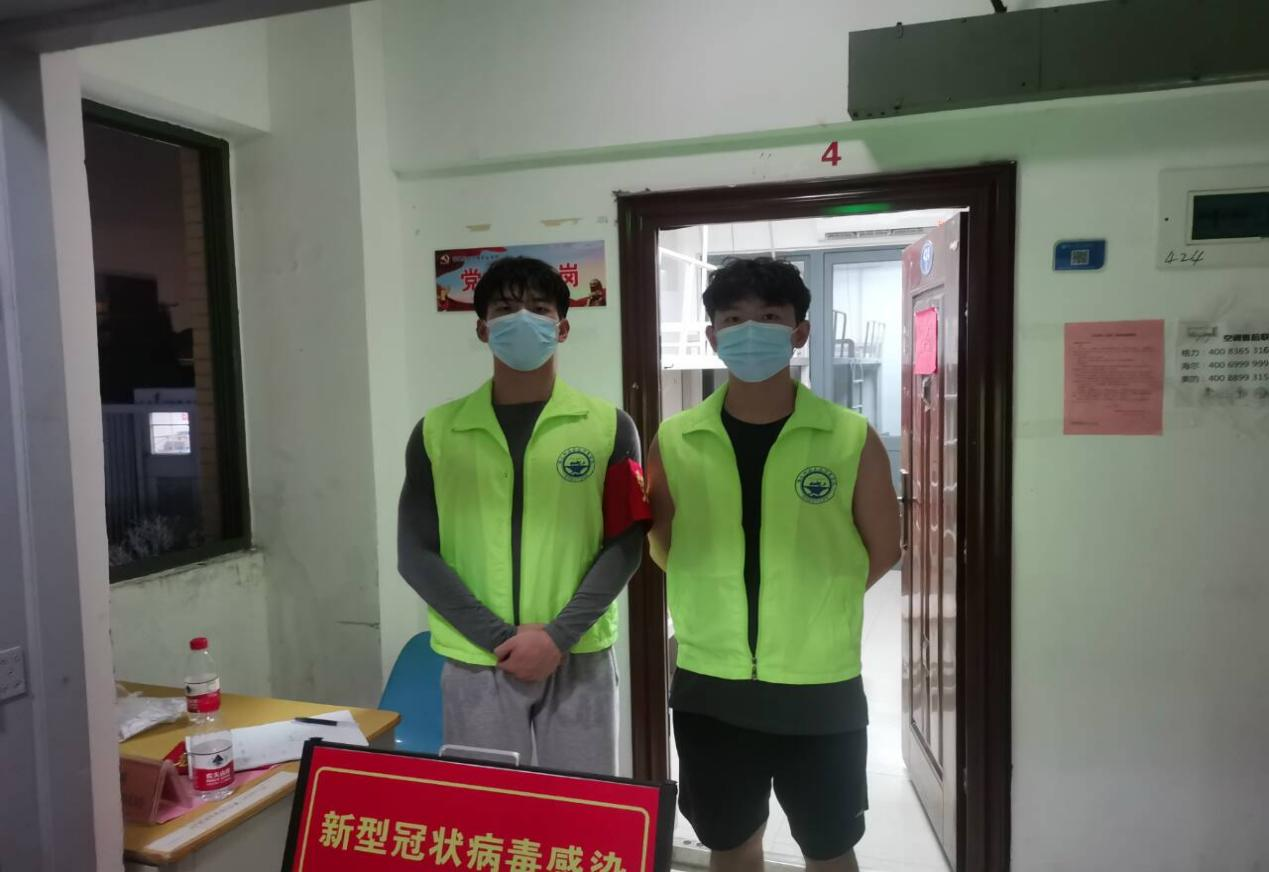 防疫監(jiān)督突擊隊(duì)的隊(duì)員們每日在宿舍樓下站崗執(zhí)勤,登記同學(xué)們的出入情況加強(qiáng)宿舍門禁管理。