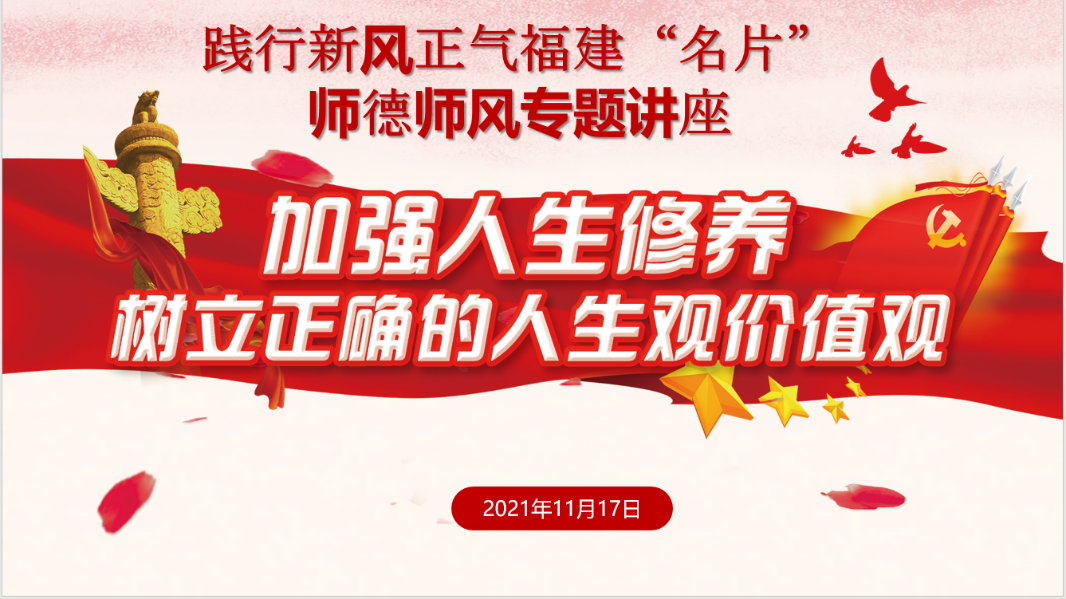 此次講座旨在踐行“堅(jiān)守立德樹人初心,辦好人民滿意教育”的新風(fēng)正氣福建“名片”,深入貫徹教育部印發(fā)《新時代高校教師職業(yè)行為十項(xiàng)準(zhǔn)則》要求,通過此次的講座活動,牢固樹立教師正確的職業(yè)理想和推進(jìn)師德建設(shè)工作創(chuàng)新為主要任務(wù),進(jìn)一步加強(qiáng)師德師風(fēng)建設(shè)的制度化和規(guī)范化,提高我院師德師風(fēng)建設(shè)的成效,從而把我院的師德師風(fēng)建設(shè)工作引向深入,助力我校雙高建設(shè)高質(zhì)量的完成。