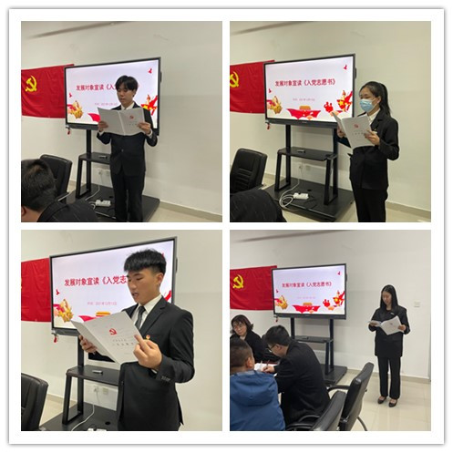 會(huì)議伊始,奏唱國(guó)際歌,在鏗鏘有力的歌聲中,大會(huì)正式拉開(kāi)序幕。首先由組織員范聲斌同志宣讀本次會(huì)議的發(fā)展對(duì)象名單,并向與會(huì)同志介紹會(huì)議流程。