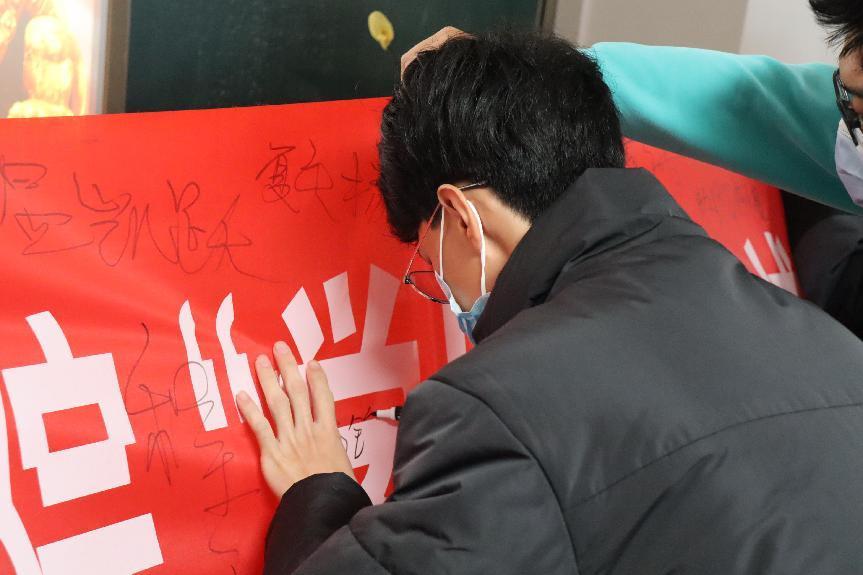 接下來同學(xué)們一一在印有“考之以誠,答之以信”誠信考試條幅上鄭重簽下自己的名字,再次表明了自己要堅守承諾、誠信應(yīng)考的決心。