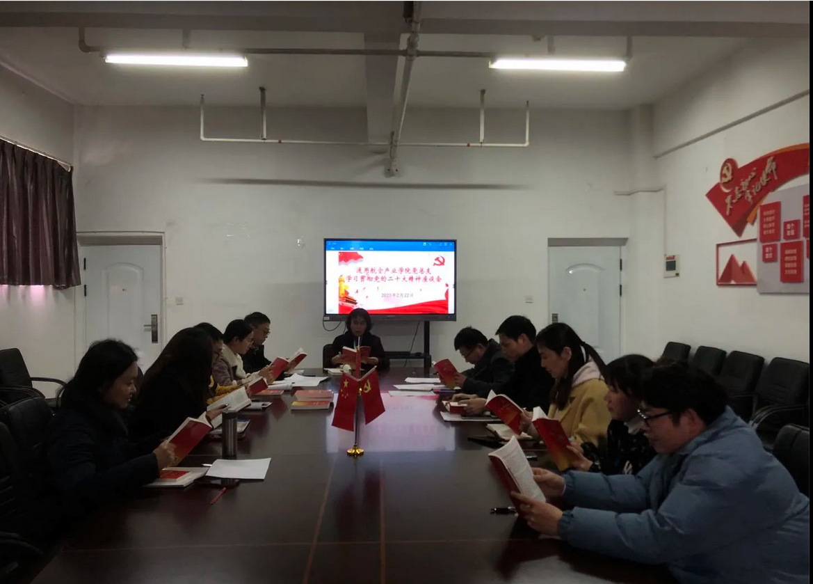 首先,黨總支副書記蘇漢美匯報了學(xué)院開展學(xué)習(xí)宣傳貫徹黨的二十大精神的基本情況,并領(lǐng)學(xué)了黨的二十大報告。