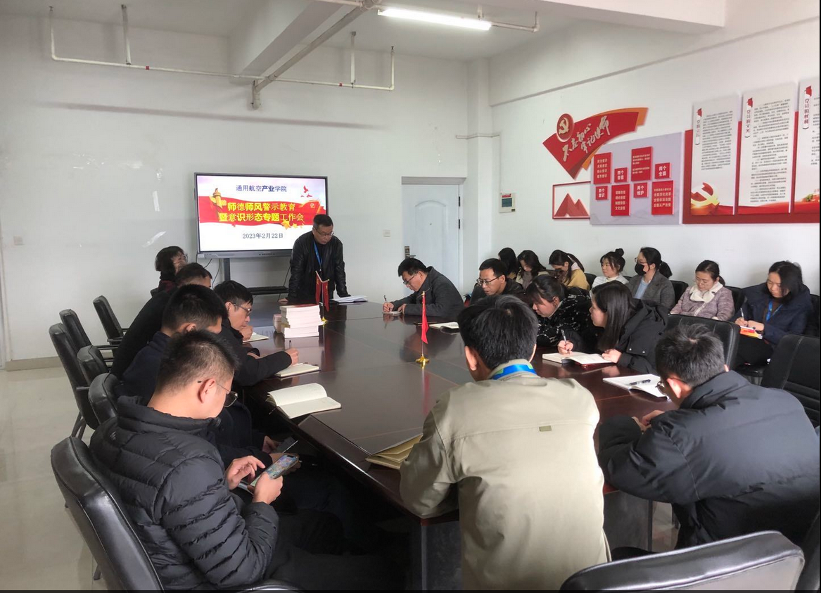 為深入推進(jìn)師德師風(fēng)建設(shè),大力弘揚(yáng)高尚師德,引導(dǎo)學(xué)院教師立德樹人、為人師表,不斷提升師德修養(yǎng)和服務(wù)水平,進(jìn)一步加強(qiáng)師德師風(fēng)建設(shè)和意識(shí)形態(tài)工作,2月22日下午,通用航空產(chǎn)業(yè)學(xué)院在鑒知樓1213會(huì)議室召開2023年新學(xué)期師德師風(fēng)警示教育暨意識(shí)形態(tài)工作專題會(huì)議,會(huì)議由學(xué)院院長陳常暉教授主持,學(xué)院全體教職工參加會(huì)議。