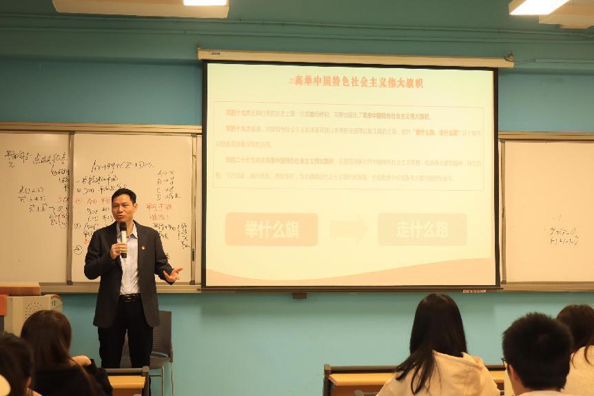 分黨校的第四講,由學(xué)生黨員張童為入黨積極分子們授課。他講到踔厲奮發(fā)的邁向新征程,就必須高舉偉大旗幟。黨的二十大報告高屋建瓴、宏大精深,科學(xué)回答了堅持和發(fā)展中國特色社會主義的歷史之問、時代之問和人民之問,開辟了馬克思主義中國化時代化新境界,是一篇閃耀著馬克思主義真理光輝的綱領(lǐng)性文獻(xiàn),是新時代新征程黨和國家事業(yè)發(fā)展、實現(xiàn)第二個百年奮斗目標(biāo)的政治宣言和行動綱領(lǐng)。