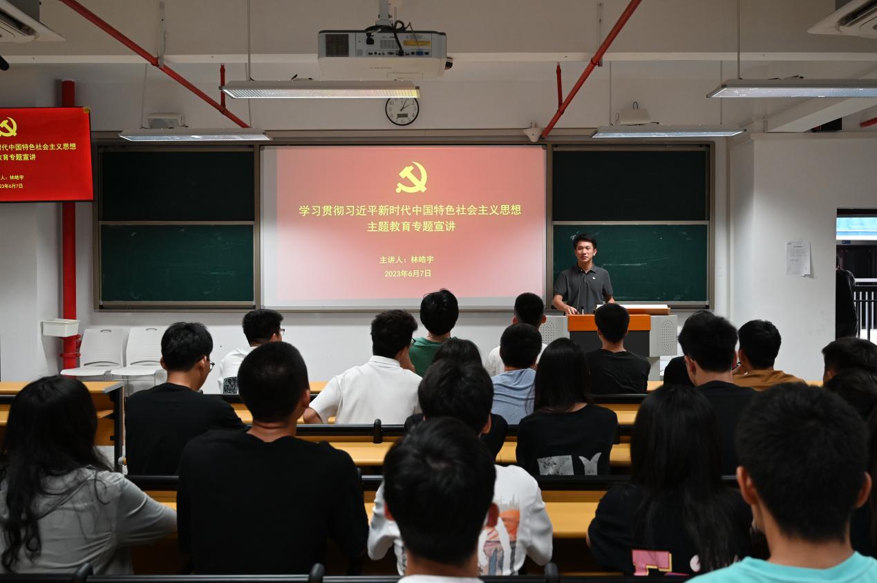青馬學(xué)員李育民于2023年06月06日在求實樓311教室開展學(xué)習貫徹習近平新時代中國特色社會主義思想主題教育宣講。