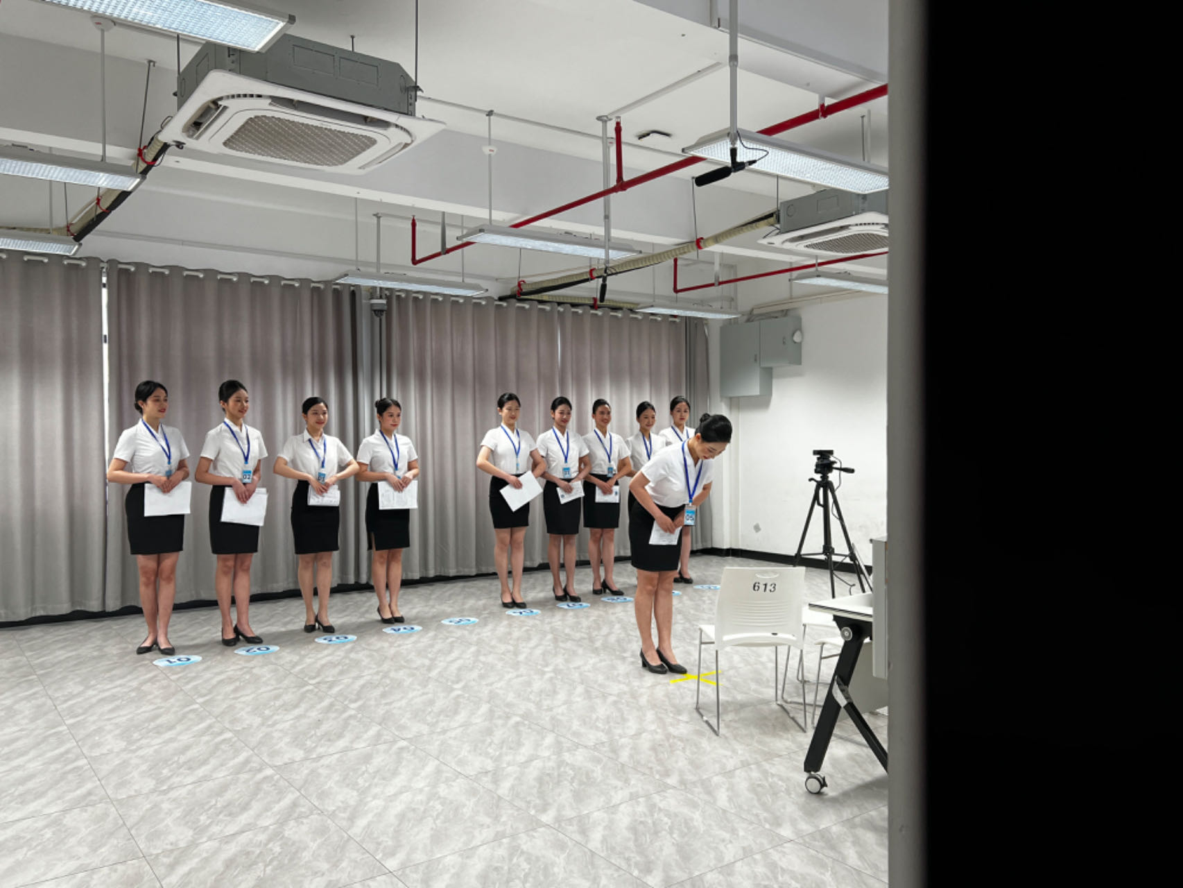 在招聘會(huì)現(xiàn)場(chǎng),廈航總部面試專家和工作人員通過線上線下相結(jié)合的方式,對(duì)面試者基本條件、身體素質(zhì)、職業(yè)形象等進(jìn)行了綜合考評(píng)。我院學(xué)生以飽滿的精神狀態(tài)和過硬的專業(yè)素質(zhì),贏得了廈航招聘團(tuán)隊(duì)的充分肯定,多名同學(xué)成功通過此次形象篩選,拿到赴廈航總部終面的入場(chǎng)券。