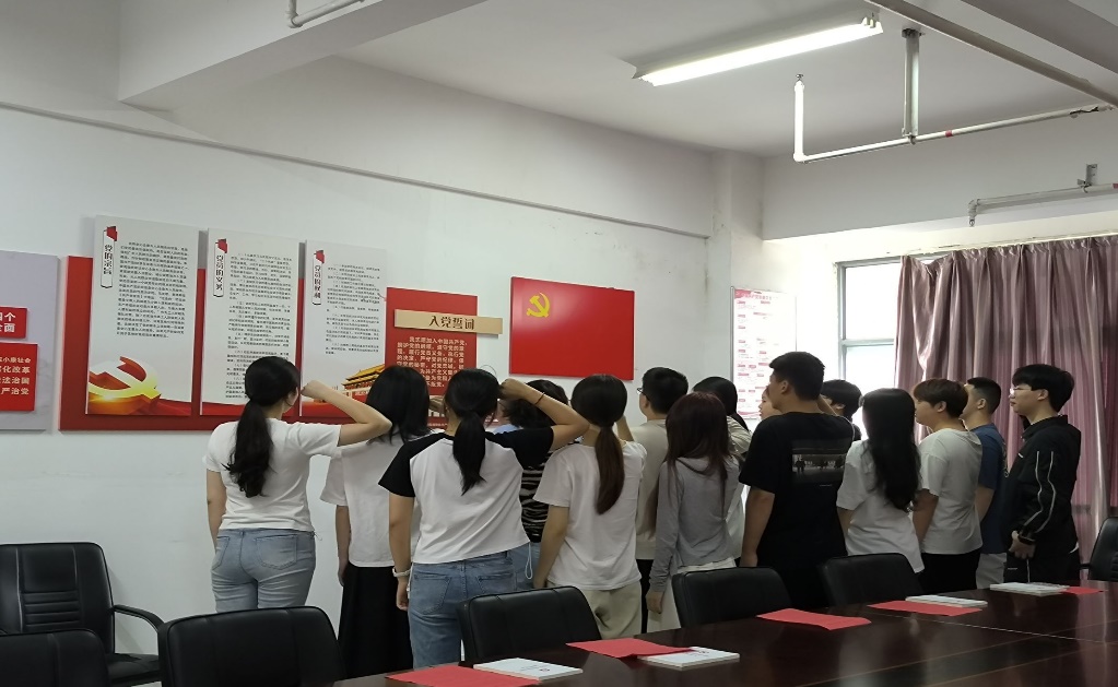 會(huì)議開始前,在支部書記白鋒橋的領(lǐng)誓下,全體畢業(yè)生黨員起立,面向鮮紅的黨旗莊嚴(yán)舉起右手,共同重溫入黨誓詞。