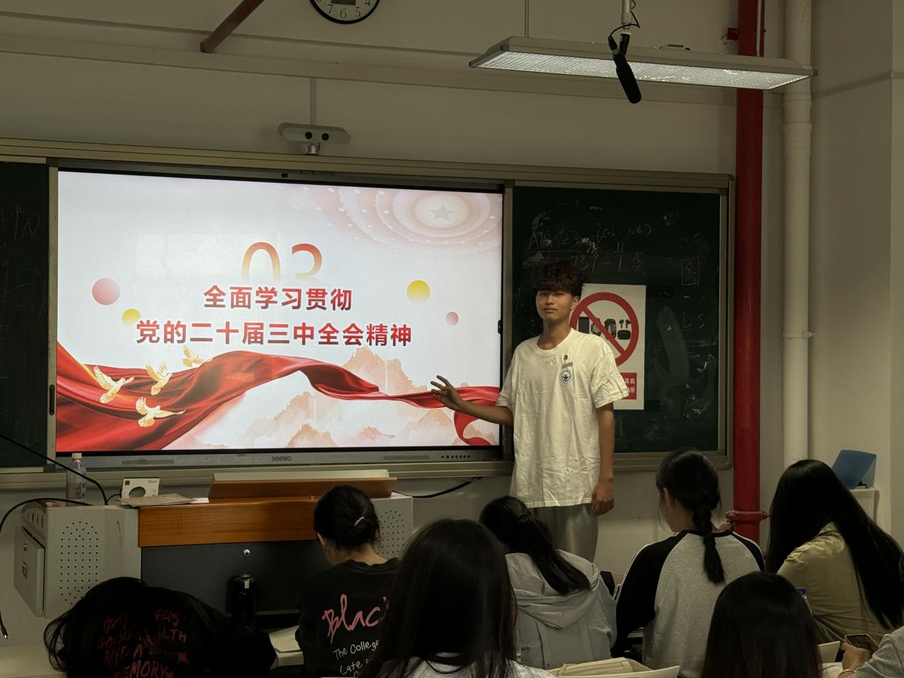 林欣妮同學(xué)告誡同學(xué)們無論是在學(xué)習(xí)中還是生活中,應(yīng)當(dāng)積極應(yīng)用黨的先進(jìn)思想理念,認(rèn)真學(xué)習(xí)黨的二十屆三中全會精神的內(nèi)涵、意義和要求,積極參加學(xué)校組織的相關(guān)學(xué)習(xí)活動、主題班會、講座等,通過學(xué)習(xí)不斷加深對會議精神的理解??梢岳谜n余時間閱讀相關(guān)的書籍、文章,關(guān)注官方媒體的解讀和報道,提升自己的政治理論素養(yǎng)。