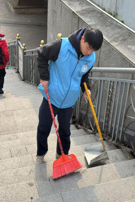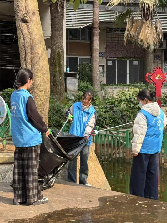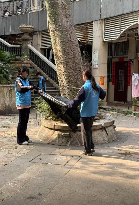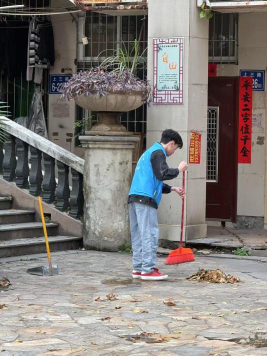 一群身著藍色志愿服的志愿者們熱情滿滿地開展清掃活動。他們不怕臟、不怕累,兩兩搭配清掃社區(qū)、清理花圃垃圾、落葉、拔除雜草,志愿者手持掃帚,認真清掃著地面的落葉和雜物,用自己的雙手為社區(qū)帶來整潔與清新。他們的行動,讓社區(qū)環(huán)境變得更加整潔,也為社區(qū)增添了一抹溫暖而亮麗的色彩。